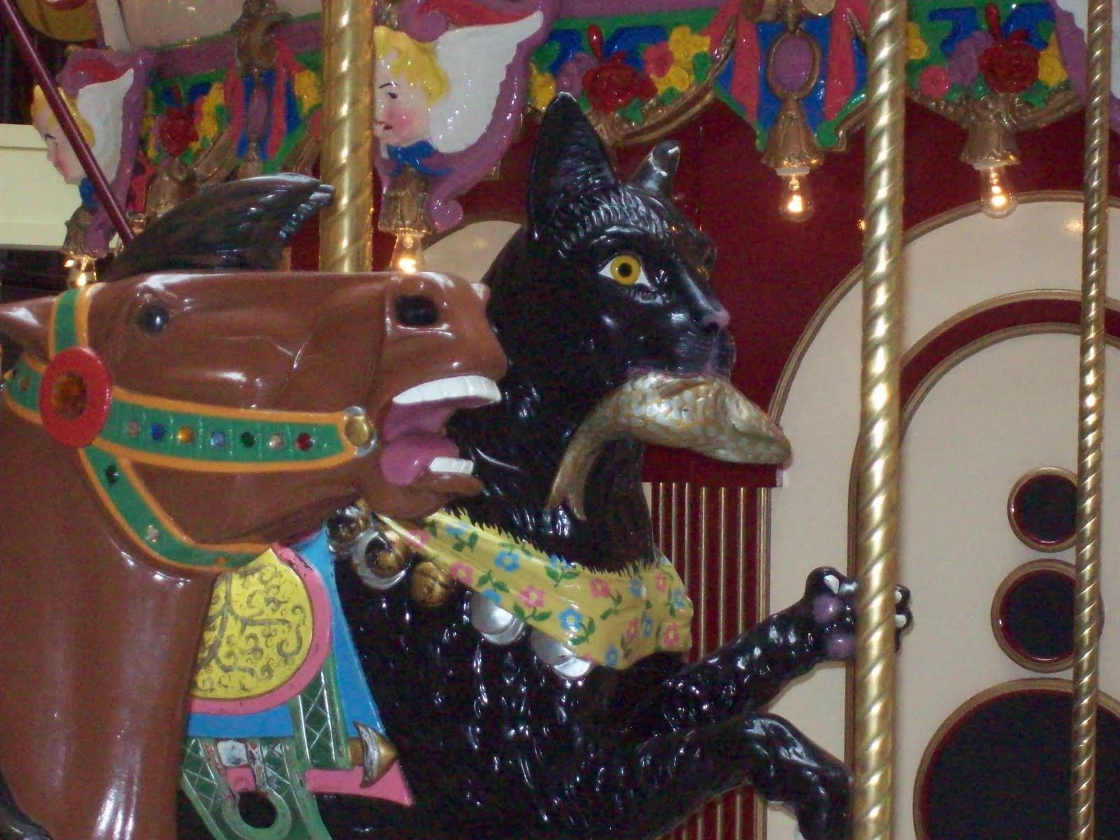 This is my favorite critter on the merry go round, for any of you that read I can has cheezburger, I have nick- named him "Basement Cat".